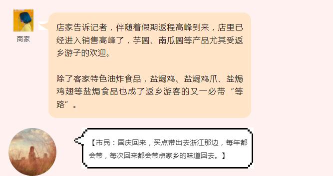 今天是“雙節(jié)”假期的最后一天,回梅過(guò)節(jié)的游子又將踏上返程;而各式各樣的伴手禮就成了必不可少的點(diǎn)綴。游子們紛紛開(kāi)始購(gòu)買土特產(chǎn),或贈(zèng)送給親朋好友,或慰藉鄉(xiāng)愁,帶上家鄉(xiāng)的味道告別家鄉(xiāng)。