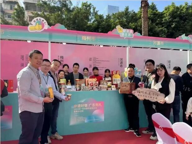12月2日,廣東非遺手信發(fā)布會在廣州市正佳廣場舉行。梅州市共有7項非遺產品入選2023年廣東非遺手信名單,分別是尚記客家鹽焗雞、長樂玉液、逗樂大叔大坪豆干、馬圖綠茶、黃金玉香糕、黃金姜糖、《青花八珍味》餐具。